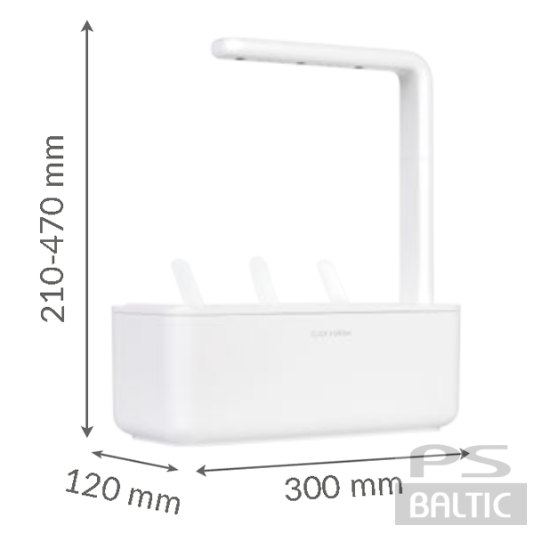 Sudedamosios dalys: modulinė lempa, atnaujinami LED diodai, 3 skyriai augalams.
